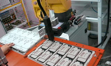 Fanuc六軸機(jī)器人配合注塑機(jī)和沖切機(jī)臺實(shí)現(xiàn)無人化作業(yè),提高工廠自動化,提高產(chǎn)能,可以同時(shí)適應(yīng)很多產(chǎn)品的相互切換。...